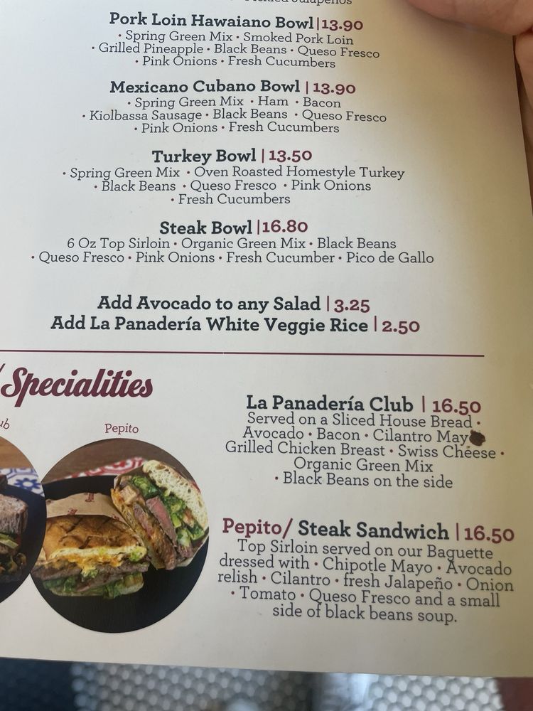 La Panadería Bakery Café Menu